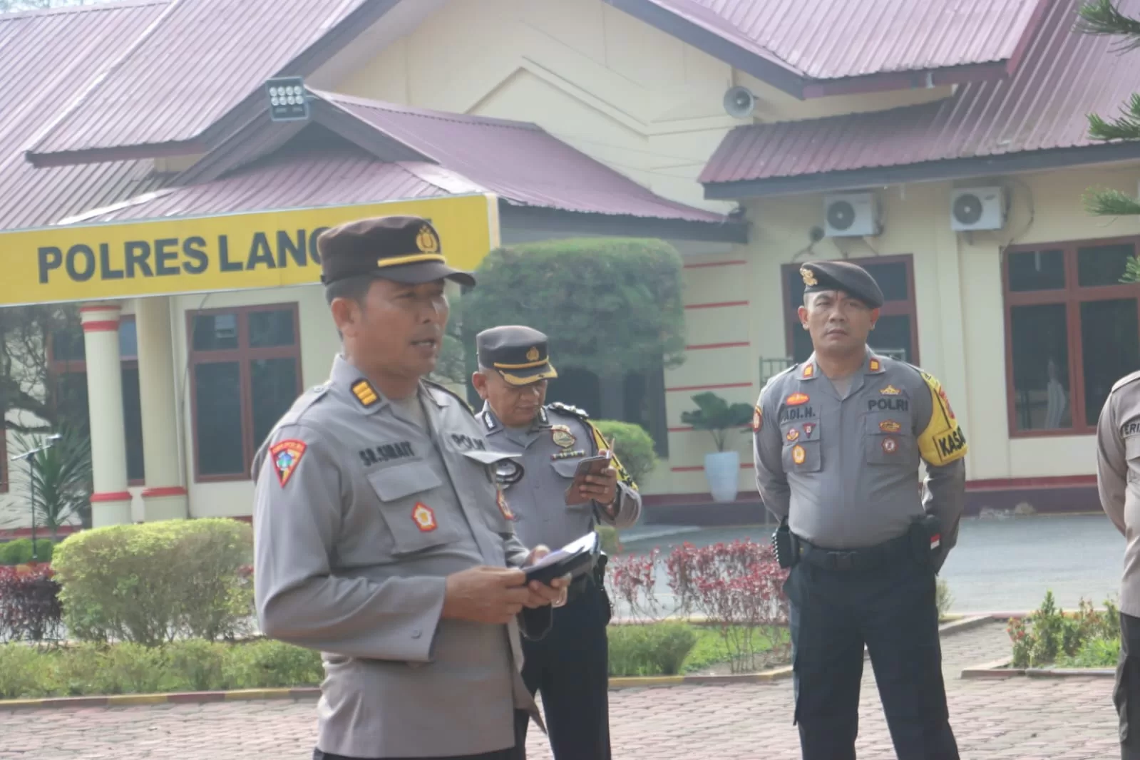 Langkat, Cinta Rakyat – Kapolres Langkat AKBP Faisal Rahmat Husein Simatupang SIK SH MH., di wakili oleh Kabag Ops, Polres Langkat AKP SAHRIAL SIRAIT SH, MH.,memimpin apel Personil Polres Langkat, Pengamanan terakhir Pleno di Kantor Pegnasos Kabupaten Langkat Senin 4/3/2024.
