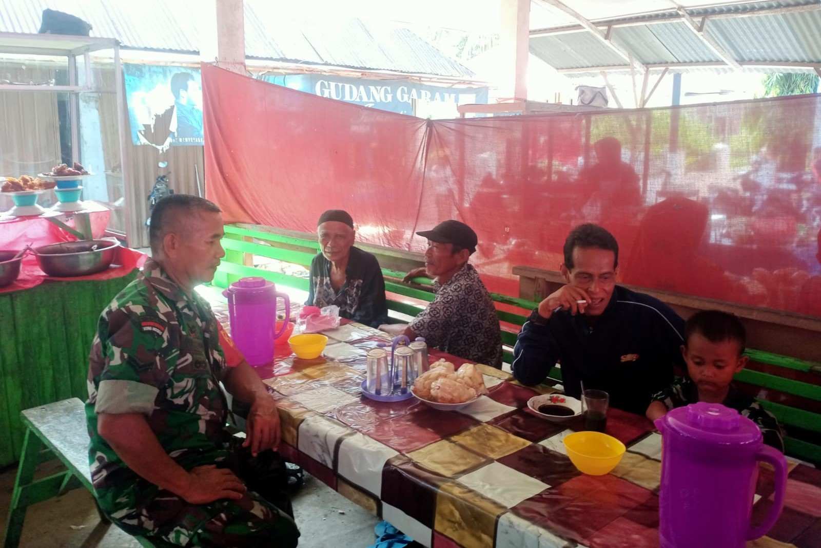 Babinsa Koramil 03/Sungai sariak Memanfaatkan Warung Kopi Sebagai Tempat Berkomunikasi Bersama dengan Masyarakat Binaan