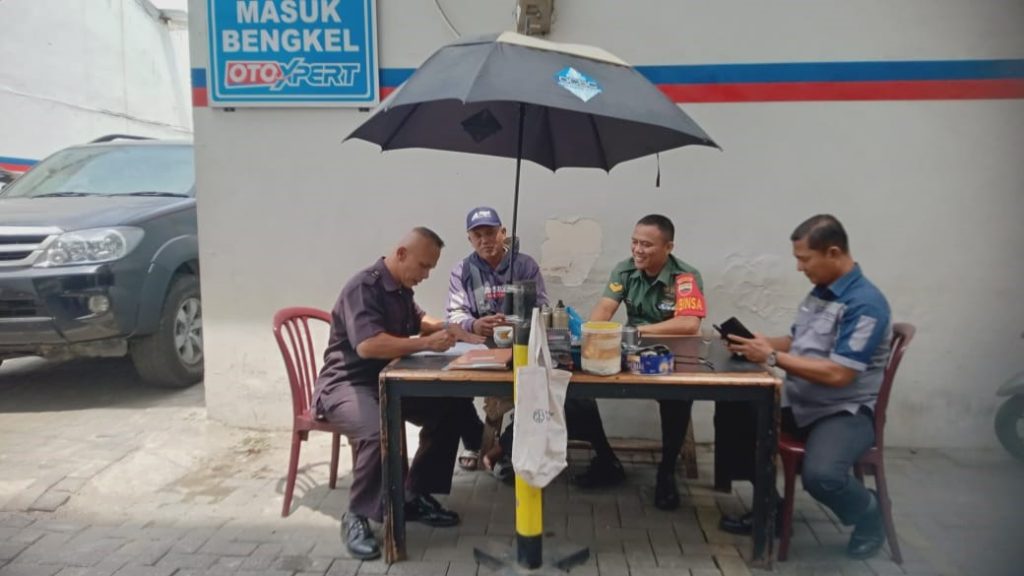 Babinsa Koramil 02/MT Kelurahan Sidodadi Gelar Komsos dengan Security dan Karyawan Showroom