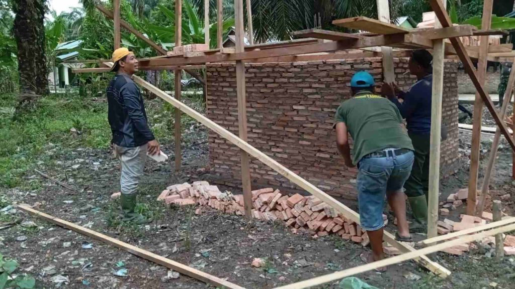 Wujudkan Hidup Sehat Masyarakat Desa Selat Beting, Satgas TMMD Kerja Keras Buat Kamar Mandi Umum Dusun II Tangkahan, Hasilnya 50%