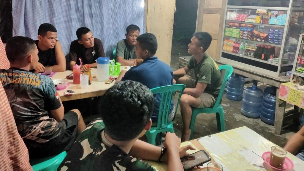 Mangkal Diwarung, Personel Satgas TMMD 120 Wujudkan Binter Dengan Warga Selat Beting