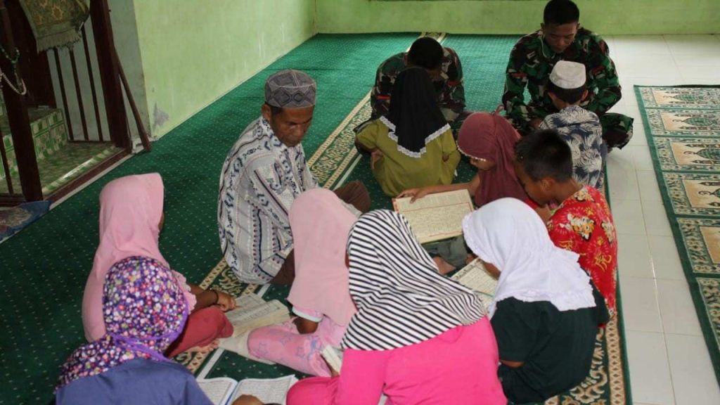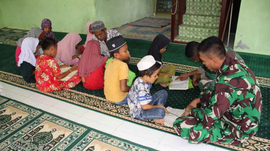Tumbuhkan Generasi Muda Berakhlak Islami, Prajurit Yonif 126/KC Ajari Anak Desa Selat Beting Mengaji