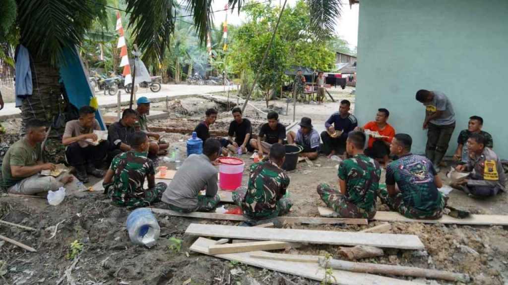 Indahnya Kebersamaan Satgas dan Warga Saat Makan Bareng Dilokasi TMMD Selat Beting