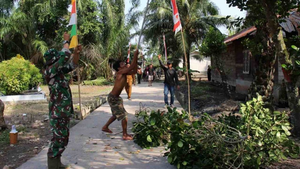 Jelang Kunjungan Tim Wasev TMMD 120, Satgas Dan Warga Selat Beting Gotongroyong Bersih-bersih Lingkungan
