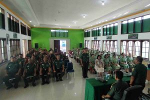 Pembinaan mental disampaikan oleh Letkol Inf H. Jalaluddin Dalimunthe, S.Ag, M.Hi, dengan tema “Militansi dalam Mendukung Tugas Pokok Satuan”.