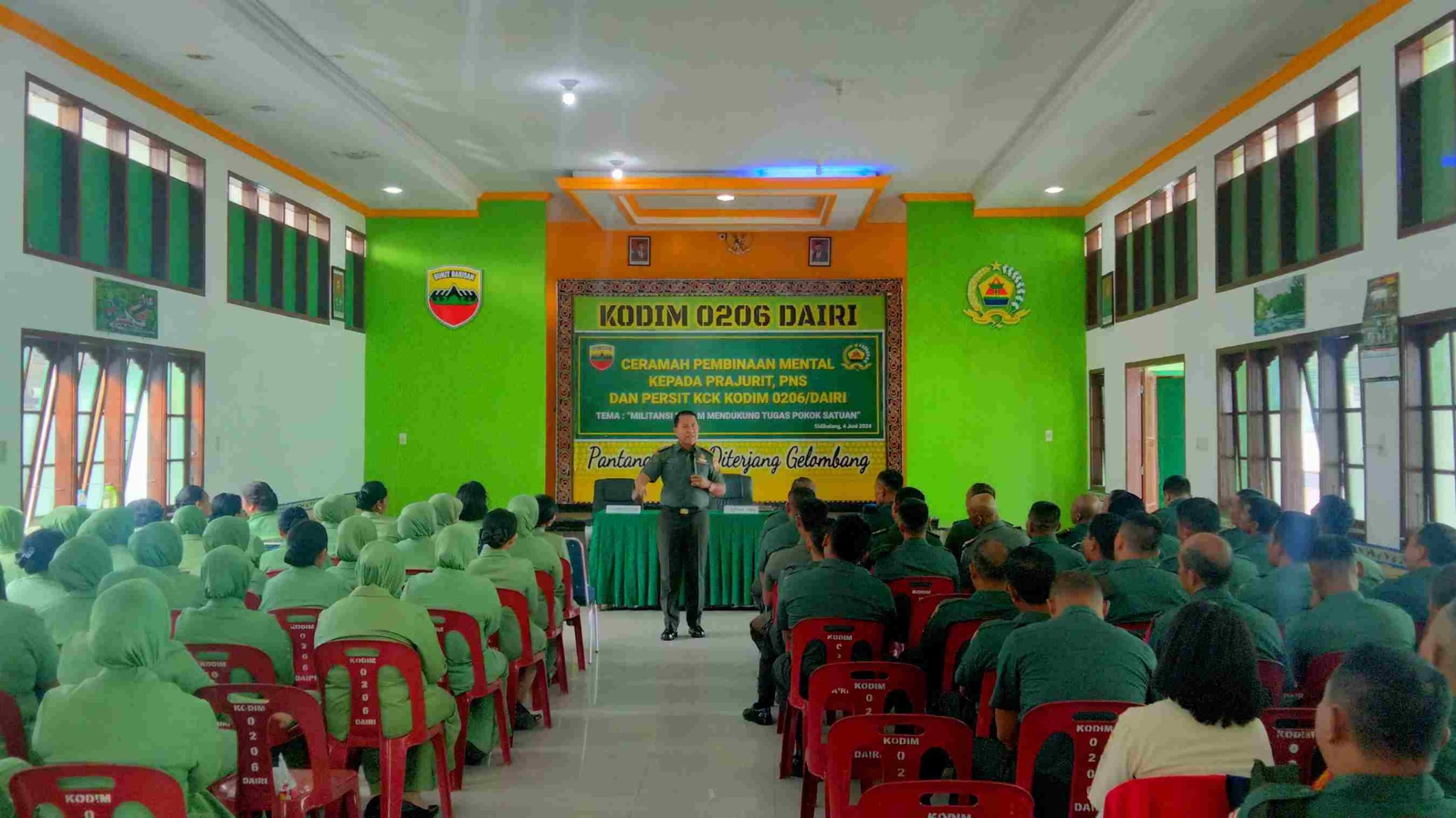 Dalam sambutannya, Kasdim 0206/Dairi Mayor Inf Jimmy Barus menyampaikan bahwa pembinaan mental ini sangat penting bagi prajurit, PNS, dan Persit untuk meningkatkan rasa syukur kepada Tuhan dan sebagai motivasi dalam melaksanakan tugas.