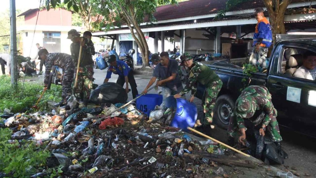 Sempena HUT Ke-74 Kodam I Bukit Barisan, Kodim 0303 Bengkalis Gelar Karya Bakti Bersihkan Pasar