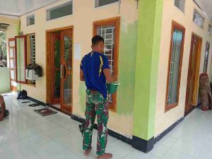 Di bawah terik matahari yang menyengat, peluh bercucuran terlihat di wajah para anggota Satgas TMMD Ke-123 dan warga. Meskipun dalam kondisi suasana puasa mereka tanpa mengenal lelah, mereka bekerja sama percantik Mushola dengan mengecatnya. Mereka anggota Satgas berpadu dengan semangat warga yang tak gentar menghadapi puasa ramadhan dan panasnya terik matahari.