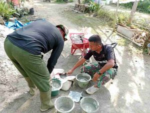 Meski di bulan suci Ramadhan pengerjaan mewujudkan hidup sehat masyarakat tersebut terus dilanjutkan oleh personel Satgas TMMD .Disini personel Satgas semangatnya berkobar-kobar untuk melanjutkan pekerjaan agar warga dapat air bersih.