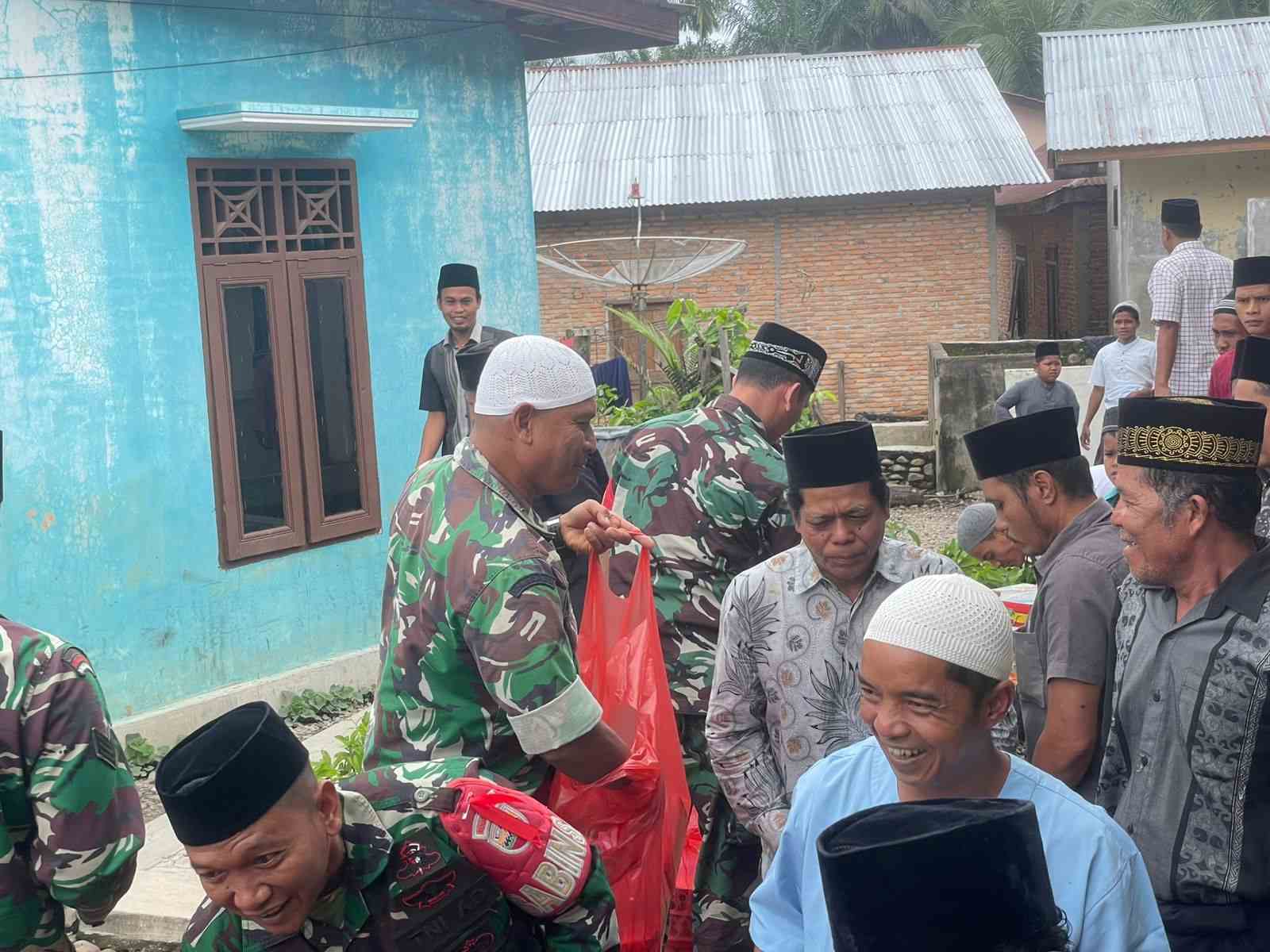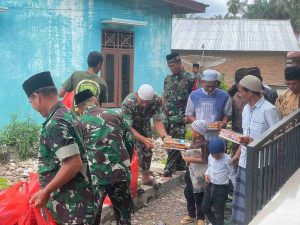 Serda Bachtiar, salah satu anggota Satgas TMMD ke-123 Kodim 0212/Tapsel, turun langsung dalam Jum’at berkah membagikan takjil kepada warga di Desa Simanuldang, Kecamatan Ulu Barumun, Kabupaten Palas, Sabtu (08/03/2025).