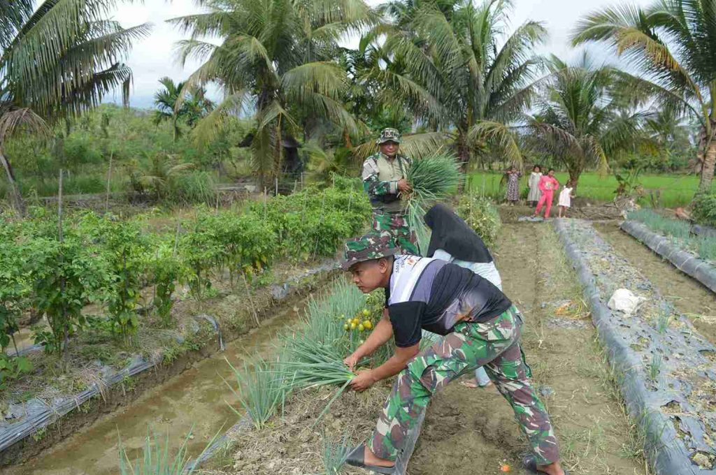 Keakraban Satgas TMMD Ke-123 Kodim 0212/Tapsel Dalam Membantu Memanen Daun Bawang Prei