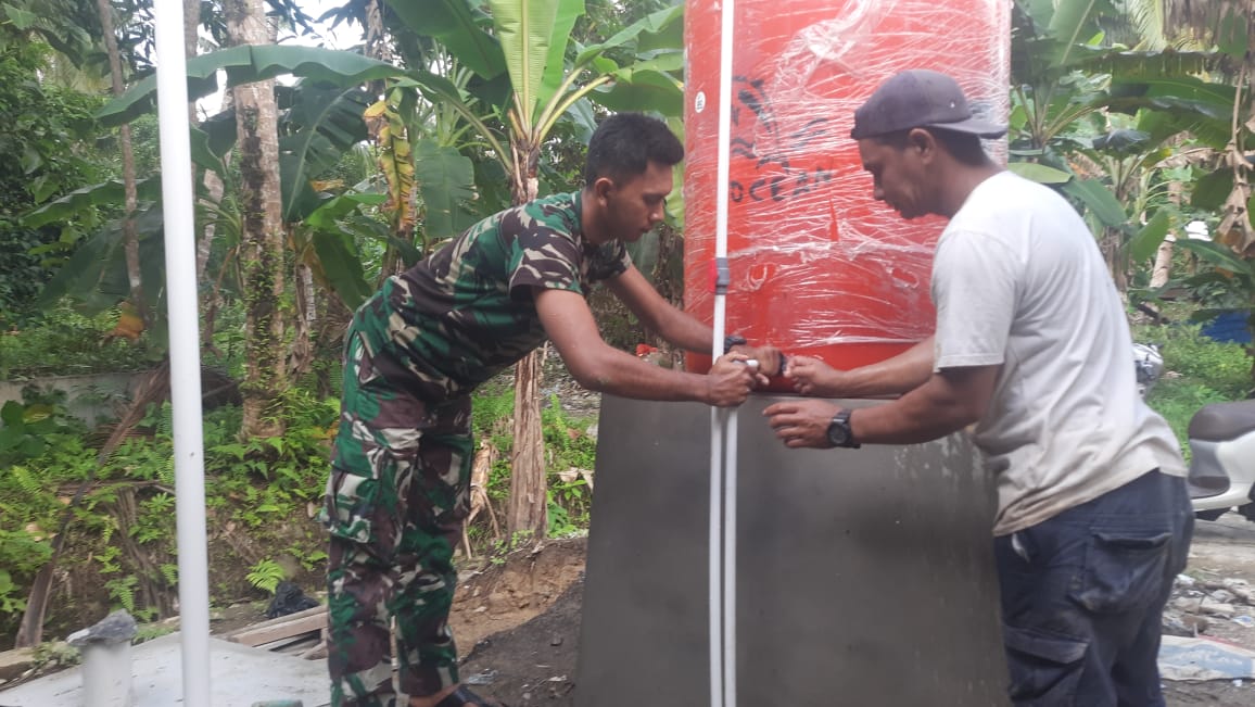 Di bawah terik matahari, beberapa prajurit TNI yang tergabung dalam Satgas TMMD terlihat sibuk merampungkan pekerjaan di sumber air bersih. Butiran keringat mereka bercampur dengan debu semen, namun di balik kerja keras itu, ada harapan besar yang tengah mereka wujudkan yaitu harapan bagi masyarakat untuk mendapatkan akses air bersih tanpa harus bersusah payah lagi.