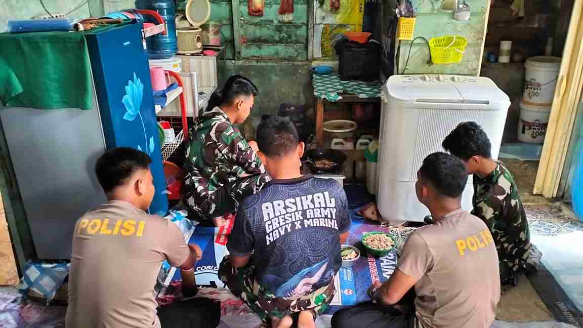 Dengan penuh semangat, para prajurit ikut mengupas sayur, mengaduk masakan, hingga menata makanan di dapur sederhana milik Ibu Rahayu warga Desa Selemam, Kecamatan Bunguran Timur Laut, Kabupaten Natuna.