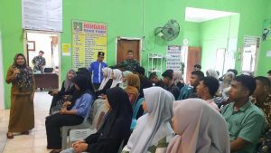Dalam acara tersebut, Satgas TMMD bersama Dinas Kesehatan memberikan materi penyuluhan pelayanan kesehatan dan penyuluhan tentang Keluarga Berencana (KB Kes).