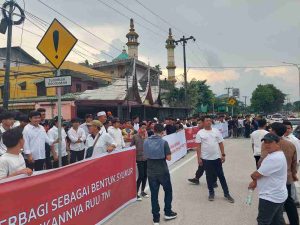 Medan, Cinta Rakyat – Ratusan warga kota Medan dari berbagai elemen membuat arus lalulintas dikawasan Manhattan macet total. Kedatangan para pendukung disyahkannya RUU TNI menjadi undang-undang tersebut berbagi takjil gratis kepada pengguna Jalan Binjai yang melintas di persimpangan Manhatan. Kamis 20 Maret 2025.