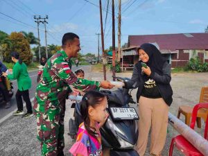 Natuna, Cinta Rakyat – Pada hari Sabtu, 29 Maret 2025 pukul 16.30 WIB hingga 17.10 WIB, Kodim 0318/Natuna menggelar kegiatan sosial berupa bagi-bagi takjil gratis di Pertigaan Lampu Merah Puskesmas Kecamatan Bunguran Timur, tepatnya di Jalan Sudirman/Jalan Sihotang, Kelurahan Ranai Kota. Acara ini diselenggarakan dalam rangka menjalin kedekatan dengan masyarakat sekaligus memperkuat citra positif Tentara Nasional Indonesia (TNI) pasca disahkannya Revisi Undang-Undang (RUU) TNI.