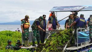 “Ini bentuk nyata komitmen TNI AD menjaga lingkungan. Kita bergotong royong bersama masyarakat membersihkan eceng gondok di tujuh kabupaten sekitar Danau Toba,” ujar Pangdam.