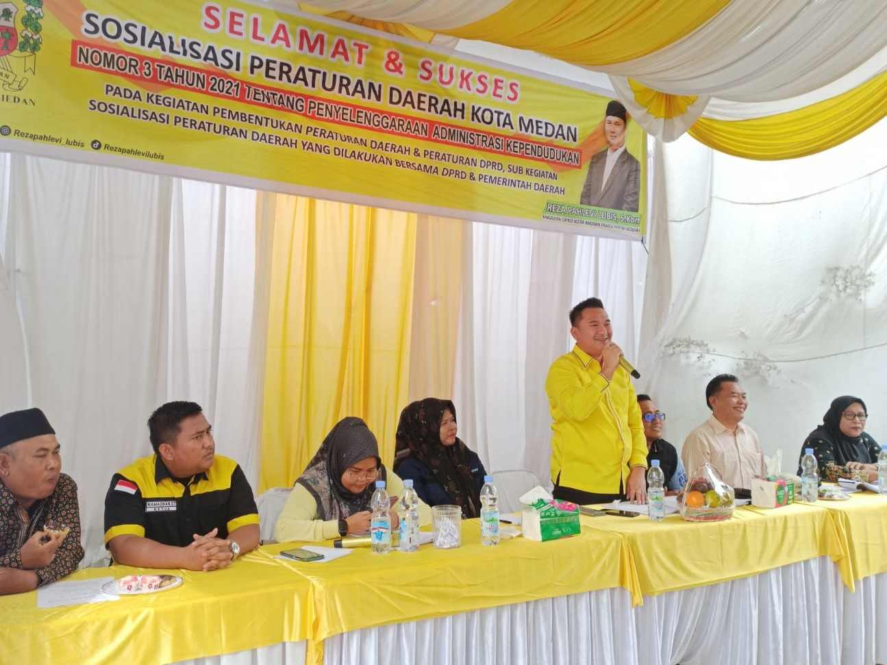Medan, Cinta Rakyat – Dalam Sosialisasi Peraturan Daerah Nomor 3 Tahun 2021 tentang Penyelanggaraan Administrasi Kependudukan, yang dilaksanakan di Lapangan Voli/Lapangan Bola, Jln. KLYos Sudarso, Lingkungan 12/13 Kelurahan Glugur Kota, Kecamatan Medan Barat. Reza Pahlevi Lubis, S.Kom, Ketua Komisi I DPRD Kota Medan, memberikan apresiasi terhadap Kecamatan Medan Barat yang memiliki sistem layanan jemput antar kepada masyarakat. “Jadi perlu digaris bawahi dengan baik, bahwa saya secara khusus memberikan apresiasi kepada Kecamatan Medan Barat yang memberikan layanan kepada masyarat dengan menjemput langsung apa yang menjadi keluhan dan masalah yang ada di masyarakat mengenai administrasi dan lainnya. Ini juga bisa menjadi contoh bagi kecamatan lainnya agar memberikan pelayanan secara langsung seperti yang dilakukan Kecamatan Medan Barat. Menjemput dan mengantar langsung kepada masyarakat, jadi masyarakat benar-benar terlayani dengan baik,” kata Reza, Minggu (25/5/25).