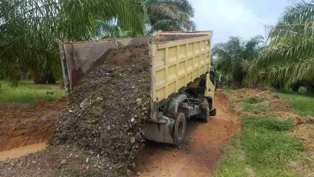 Matrial Ditumpahkan Truk, Wales Stump Meratakan Jalan di Dusun Bukit Timur Padang Tualang