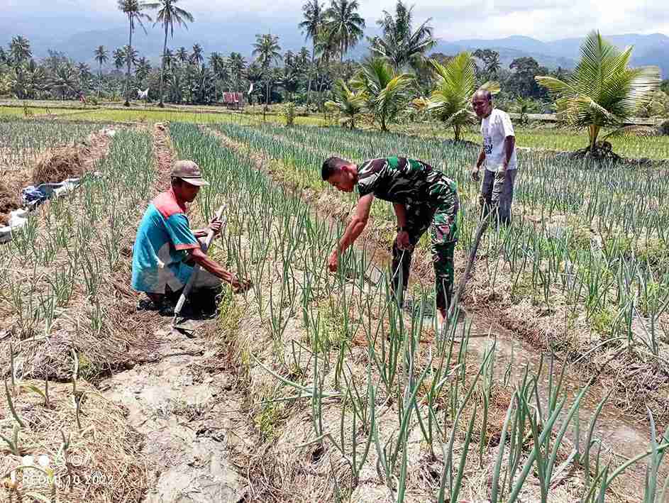 Bantu Warga Bersihkan Kebun Daun Bawang Di Lokasi TMMD Ke-123 Kodim 0212/Tapsel