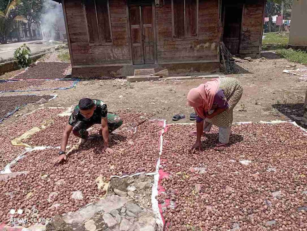 Tingkatkan Kepedulian, Anggota Satgas TMMD Ke-123 Kodim Tapsel Bantu Warga Jemur Pinang
