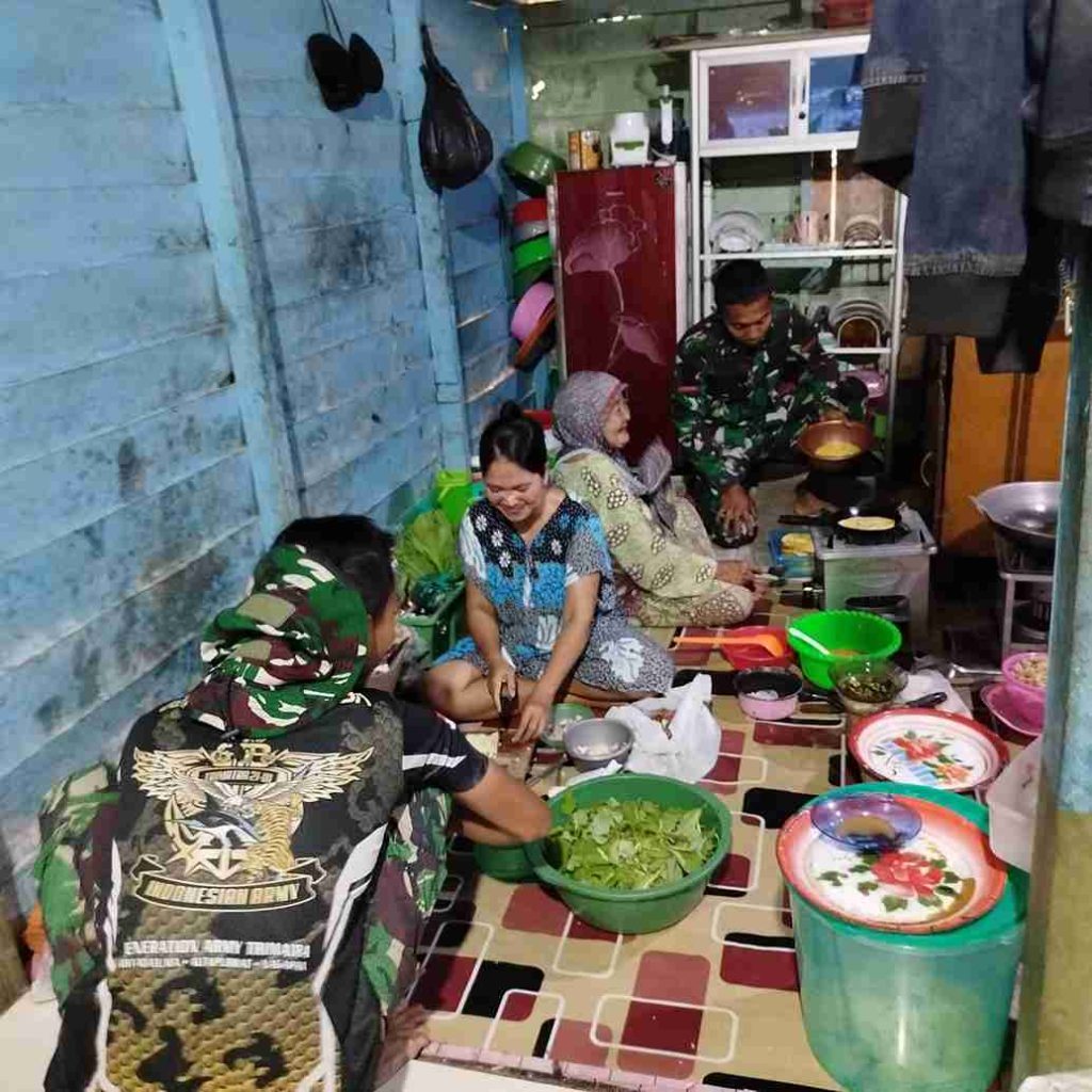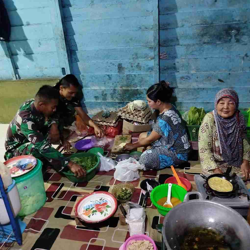 Wujud Kedekatan, Satgas TMMD 123 Natuna Membantu Ibu-ibu Memasak