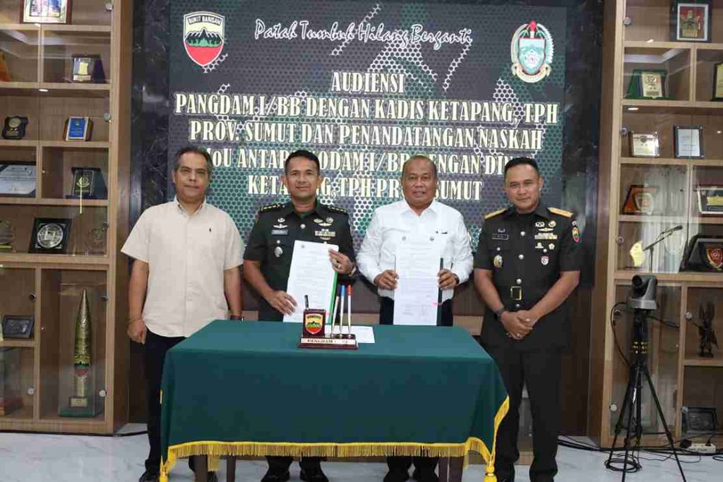 Medan, Cinta Rakyat – Komando Daerah Militer I/Bukit Barisan (Kodam I/BB) bersama Dinas Ketahanan Pangan, Tanaman Pangan dan Hortikultura Provinsi Sumatera Utara sepakat menjalin kerja sama strategis untuk memperkuat ketahanan pangan daerah. Kesepakatan ini terjalin dalam audiensi yang berlangsung di Makodam I/BB, Jumat (25/4/2025), dan ditandai dengan penandatanganan nota kesepahaman. Pangdam I/BB Mayjen TNI Rio […]